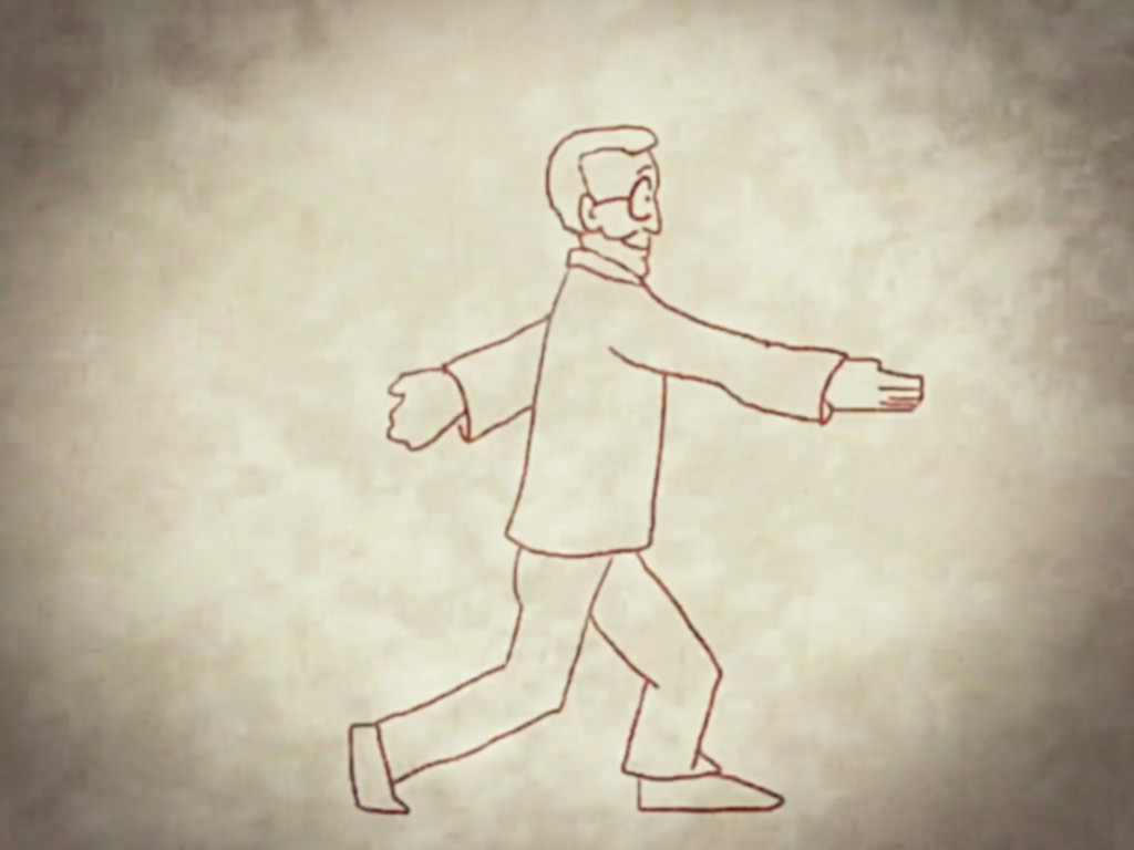 Okay, this isn’t my first animated walk, but it’s one of the first that didn’t make use of limited animation techniques, such as the puppet rigging system in Anime Studio Pro. I did this one the new old fashioned way, frame by frame in Photoshop. (And then to hammer home the old-fashiondness, I added some cheapo fakery to make it look like a real pencil test; see here for some examples.)