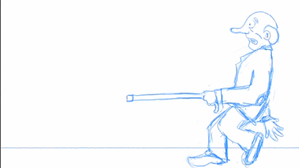 So, I finished animating. At this point, it would normally be time for cleanup work, then ink and paint, but I think if “Old Man Loses His Balance” drags into a fourth day, my 3 regular viewers will stage a boycott. So, tomorrow, expect something completely unrelated.